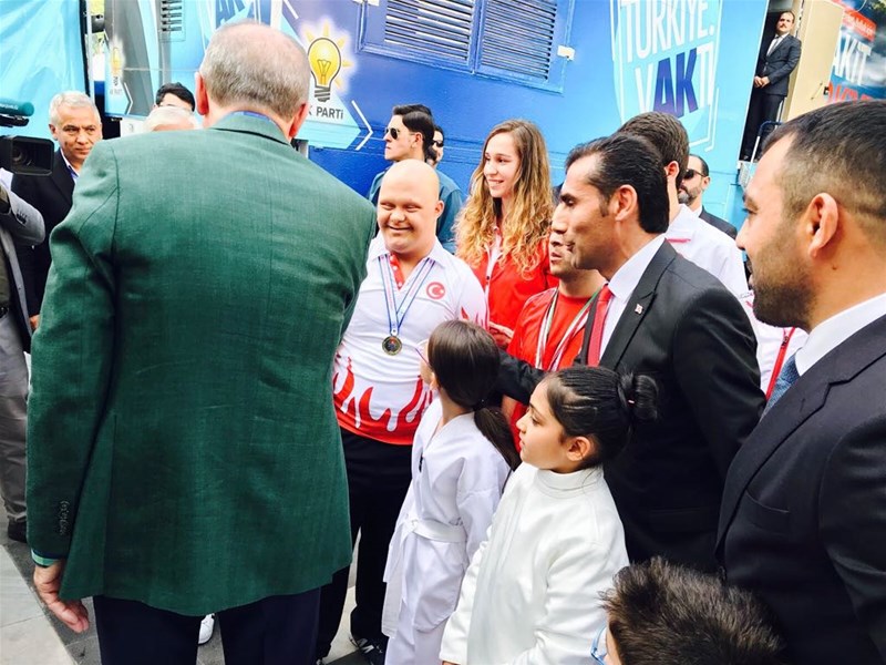Sayın Cumhurbaşkanımız Recep Tayip Erdoğanın ilimiz Adıyamana teşrifleri esnasında Milli Sporcularımızı kabul ederek,sporcularımızın başarıları ve talepleri ile ilgili Cumhurbaşkanı Baş Danışmani Hamza Yerlikaya ve Gençlik Hizmetleri ve Spor İl Müdürü Fikret Keleş'ten bilgi alan Cumhurbaşkanı Erdoğan Dünya,Avrupa ve Türkiye Şampiyonalarında başarı gösteren Milli Sporcularımızı tebrik etti.