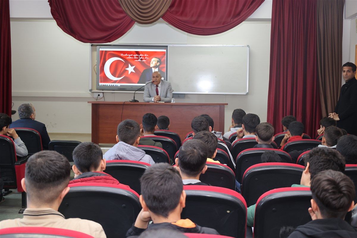 Adıyaman Gençlik ve Spor İl Müdürü Hüseyin Elüstü, Kariyer Günleri etkinlikleri kapsamında Mimar Sinan Mesleki ve Teknik Anadolu Lisesi konferans salonunda öğrencilerle bir araya gelerek kariyer süreci, çalışma hayatı ve gençlere yönelik hizmetler hakkında bilgilendirmelerde bulundu.