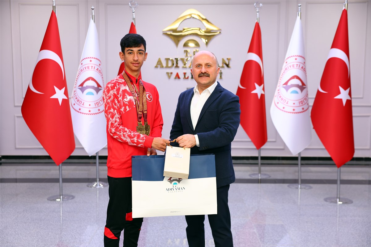Sporcularımızla gelecek hedefleri üzerine sohbet ederek başarılarının devamını dileyen Valimiz, azmin, inancın ve disiplinin eseri olan bu tarihi başarıdan dolayı sporcularımızı tebrik ederek, her birinin Adıyaman’ın ve Türkiye’nin gururu olduğunu vurguladı.